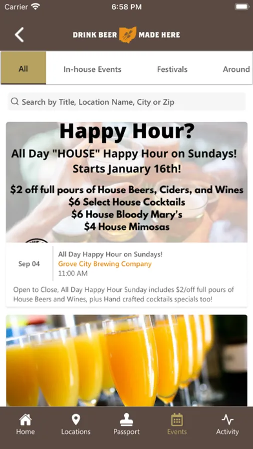 • Event listings including Ohio Craft Brewers Association signature tasting events