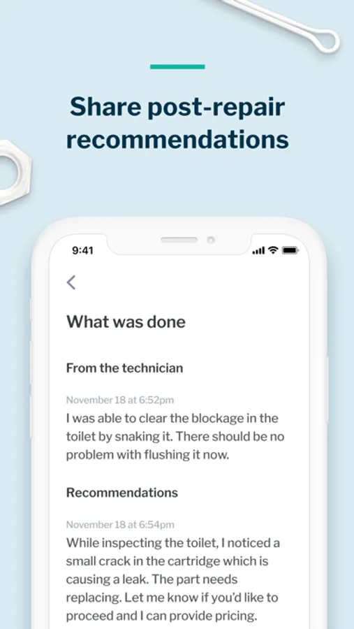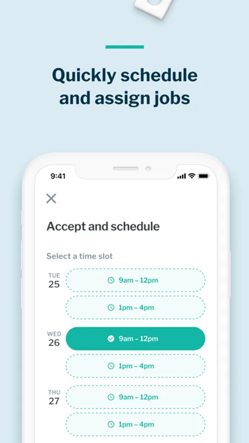 Through our app, you can get notified about new available jobs, accept and schedule within the app, and add photos and recommendations that are available to customers after the job is complete.