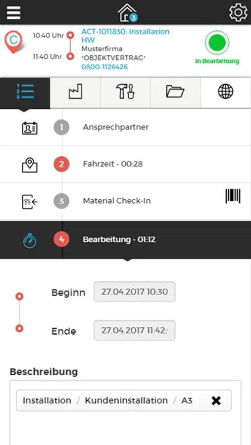 • Zugang zu allen relevanten Daten: Auftragsdetails, Standort, Kontaktdaten, Objekt- und Gerätedaten, Auftragshistorie, Hierarchische Fehlerbeschreibungen, Betriebsmerkmale