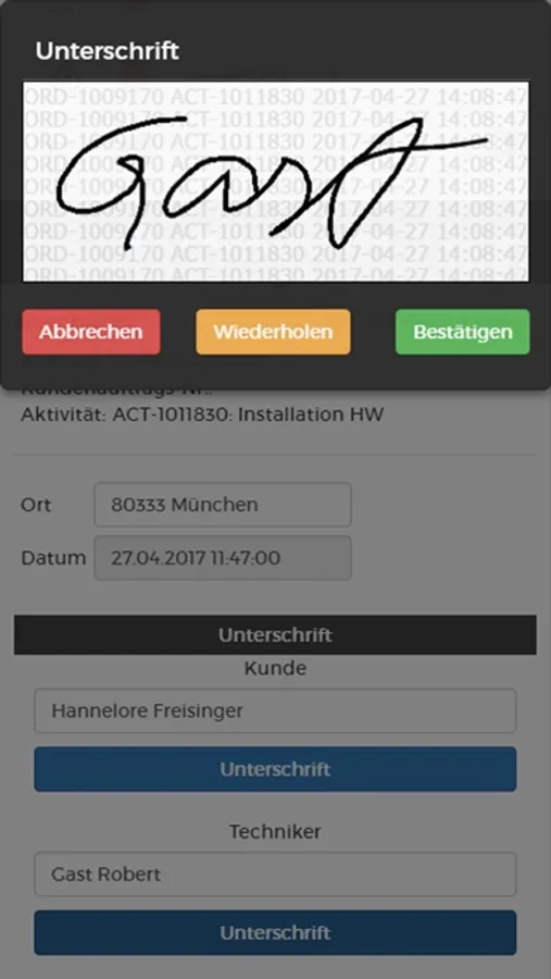 • Schneller und qualifizierter Auftragsabschluss aufgrund der direkten und verlustfreien Bearbeitung von Aufträgen: Direktes Erstellen von Servicereports mit digitaler Unterschriftenerfassung, Upload von Dokumenten und Fotos über ein integriertes Dokumenten-Management-System
