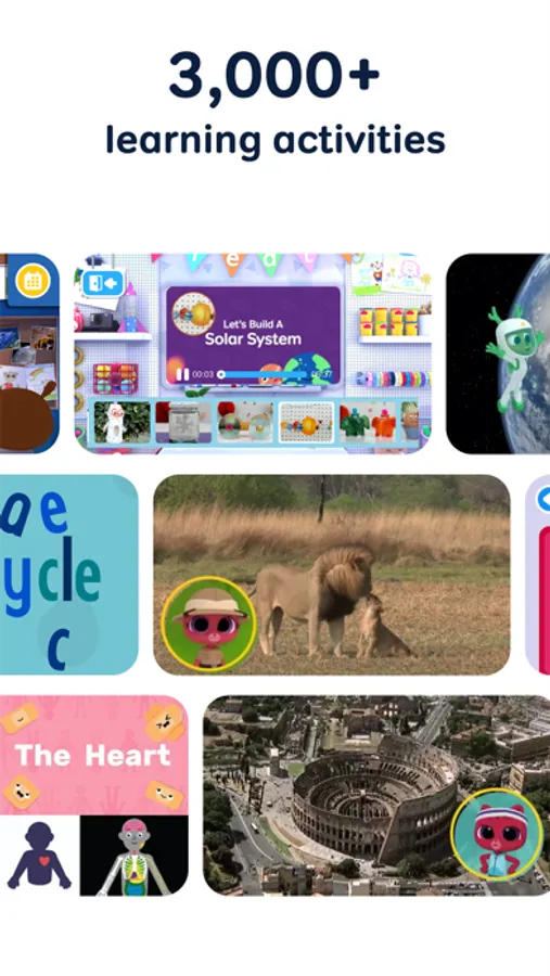Designed by leading early childhood educators, our colorful, educational characters take your child on a mind-expanding journey through 500+ video lessons and 3,000+ activities.
