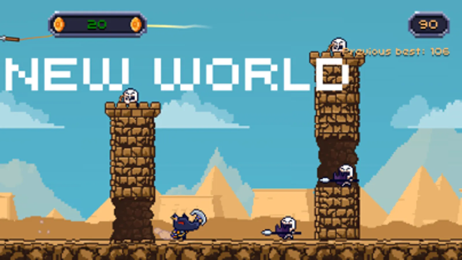 Jump and dash your way over, under and through ruined towers with the easy to learn two button controls. Dash enemies and get combos, while avoiding arrows, spears and axes!