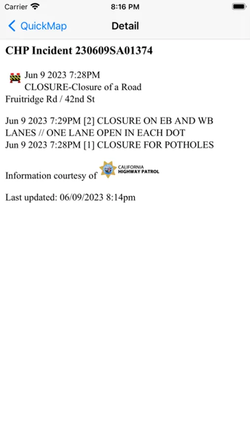 - CHP incidents