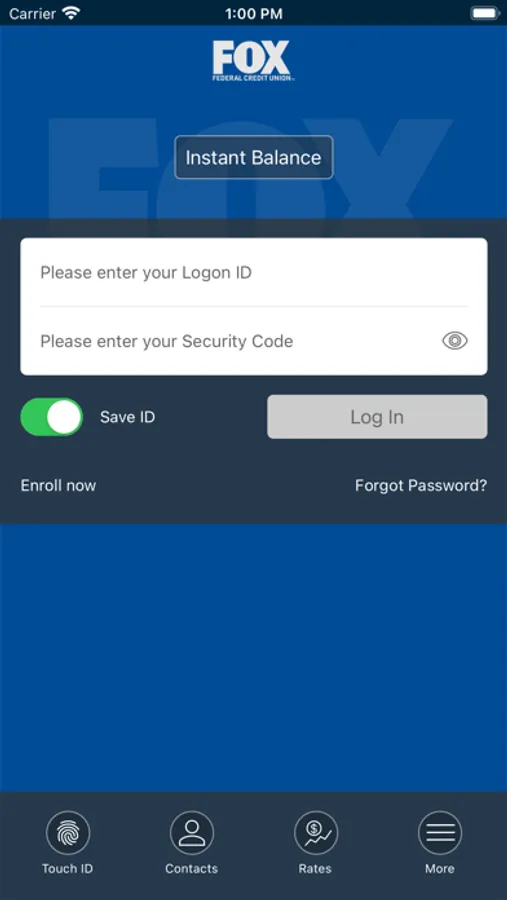 A User Name and Password is required for logging onto this app and can be created when registering for online banking. To register for FFCU’s Online Banking service, please visit our website at www.foxcredit.org and choose Enroll in the logon box. You must have online banking service and a password to access account information via Fox Mobile Banking.