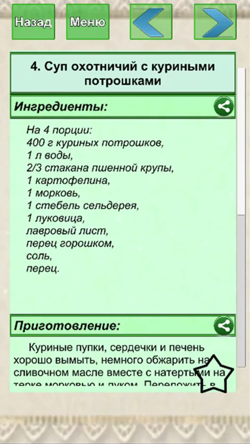 Приложение поможет порадовать вашу семью, подготовиться к любому празднику в том числе и новому году. С его помощью, вам не нужно будет отвлекаться и бегать к компьютеру или искать книжки. У вас все лучшие оригинальные рецепты всегда будут под рукой.