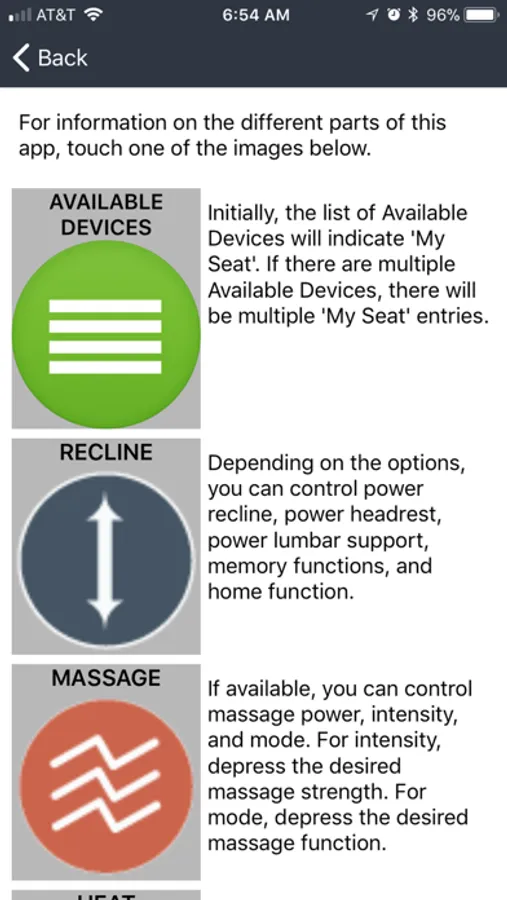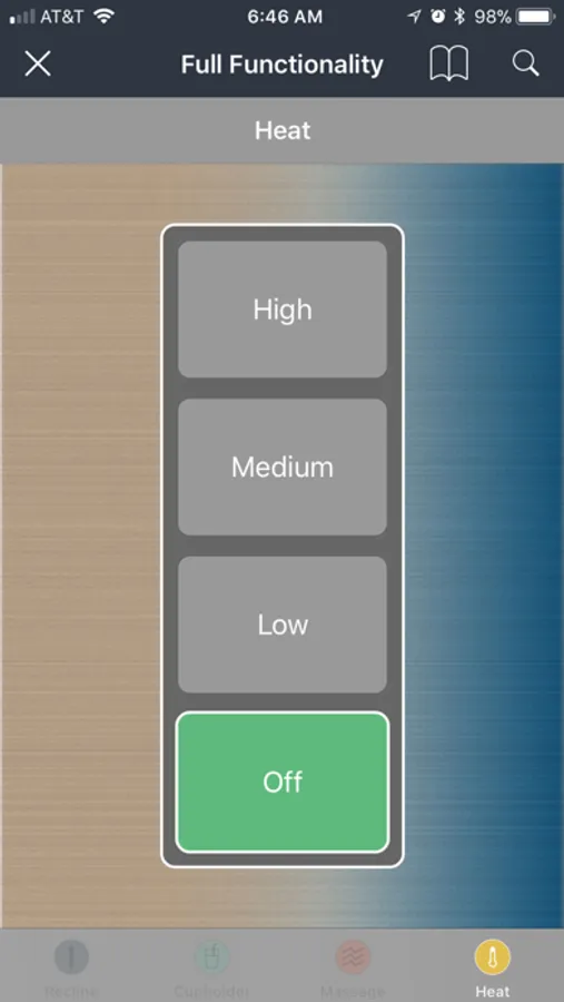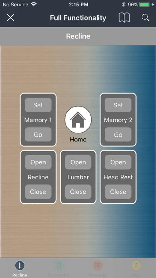 The app allows you to connect to your enabled furniture via Bluetooth from your iPhone or iPad. Depending on the options, you can control the electric motors that move your chair or sofa and may include power recline, power headrest, power lumbar support, memory functions, home function, light, cooling cup, heat, and massage.