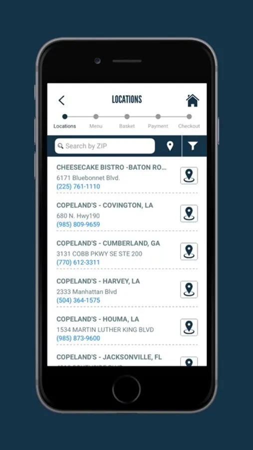 • Find a Copeland's or Cheesecake Bistro that’s closest to your location.