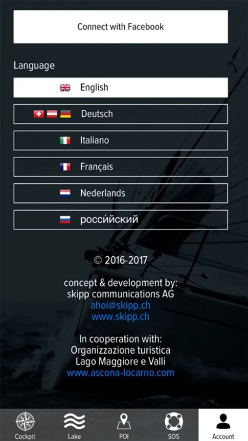 The «Lago Maggiore official» app from skipp has been created specifically for skippers (sailing boats and motorboats). The Facebook link shows you the location of your friends on the lake at any time and where they are headed. The app includes a compass and detailed position information, records the lake route travelled and provides detailed information on petrol stations, anchorage grounds, jetties and restaurants.