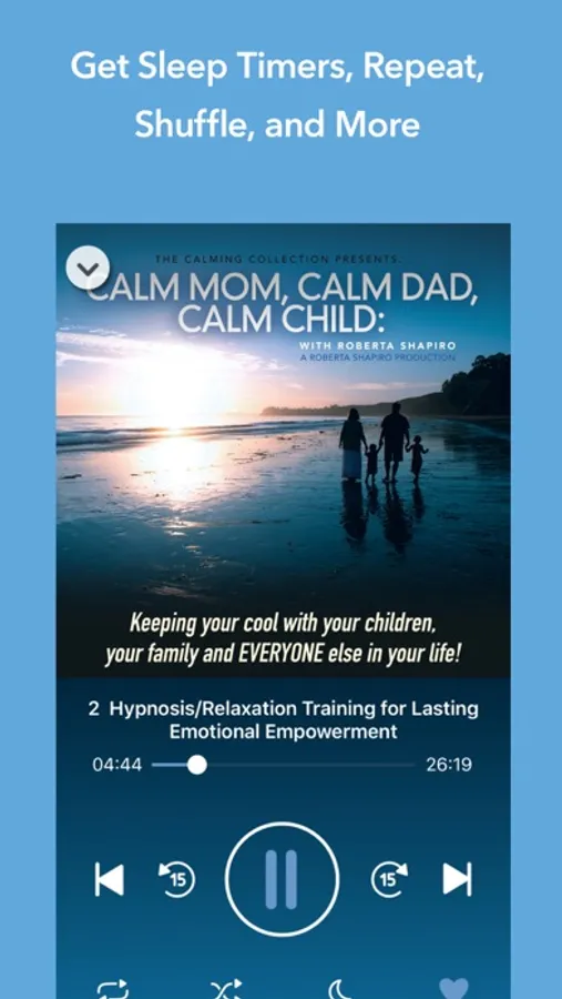 Calm Mom, Calm Dad, Calm Child includes hypnosis and meditations for parents, as well as tracks for relaxation training for children.