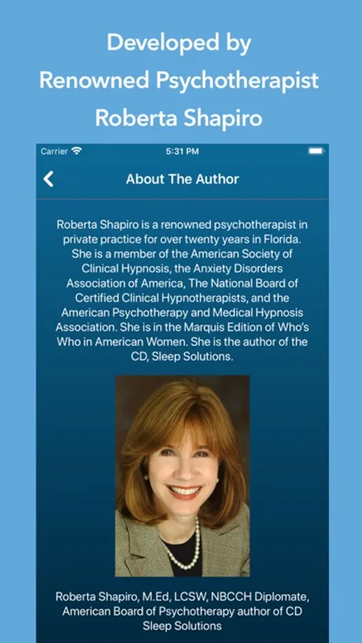 Roberta Shapiro is a renowned psychotherapist in private practice for over twenty years in Florida. She is a member of the American Society of Clinical Hypnosis, the Anxiety Disorders Association of America, The National Board of Certified Clinical Hypnotherapists, and the American Psychotherapy and Medical Hypnosis Association. She is in the Marquis Edition of Who’s Who in American Women.
