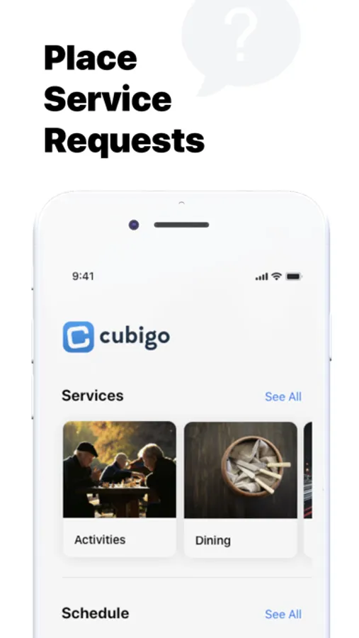 Cubigo is an app for residents, and their families, to access and interact with services provided by their residential communities.