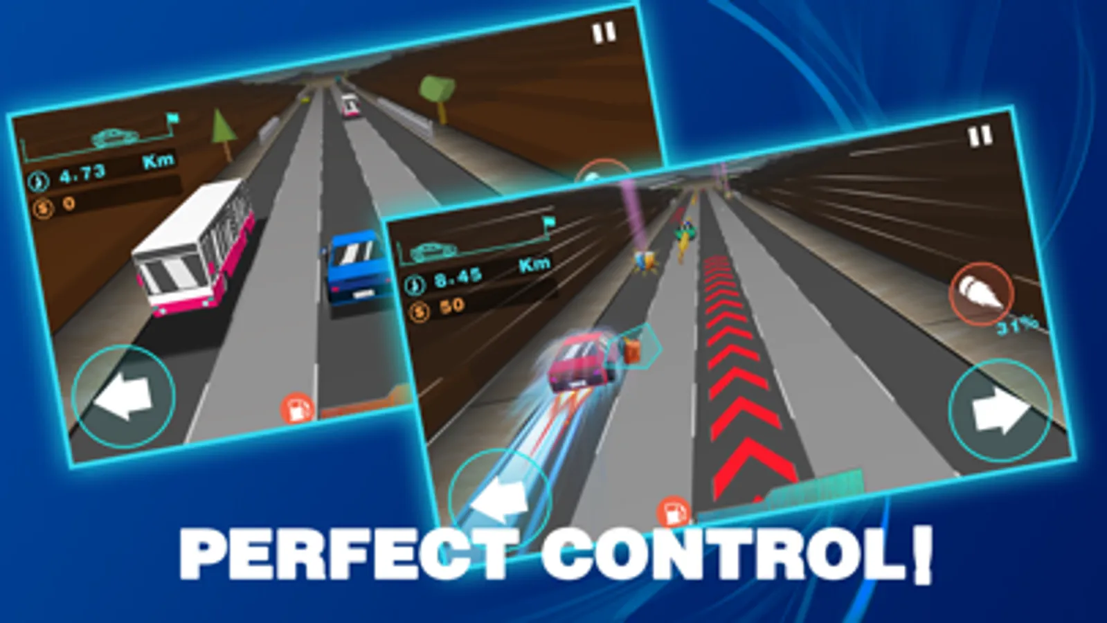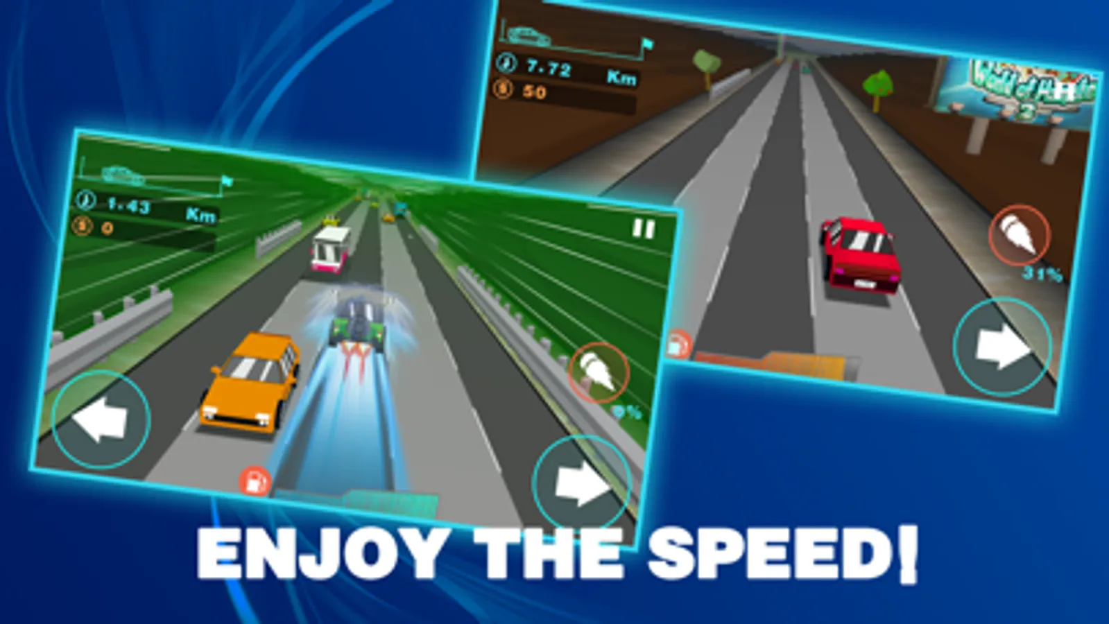 Playing Method:Players according to the left and right keys to move the vehicle,in the process of driving on absorbing all coins and cans for acceleration value and power source.Experience the speed racing at the same time, the player needs through a variety of obstacles to make car further.