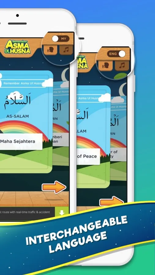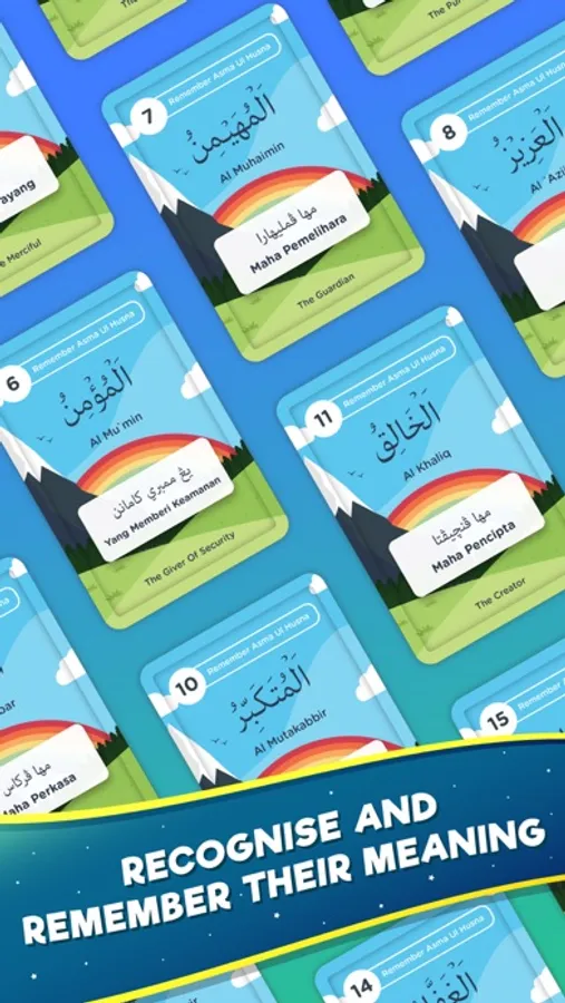Remember Asma Ul Husna is flash card game application to help memorize the 99 Names of Allah. Every single cards comes with sound and writing in english or malay translation. This application comes with mini game to test and match suitable meanings for each names.