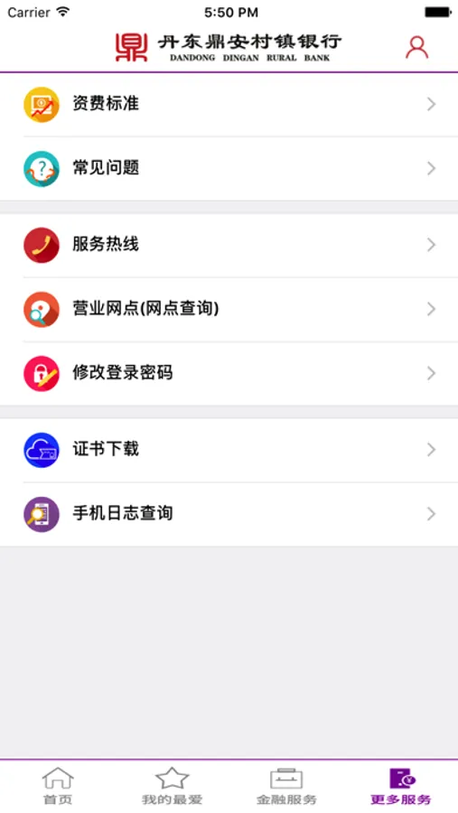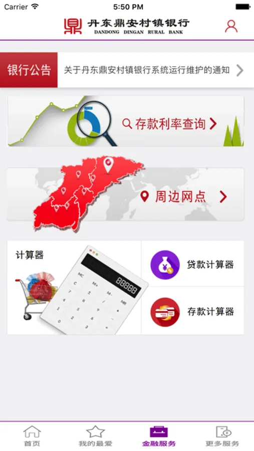全新的客户体验:提供4个简捷切换页面,首页菜单以九宫格形式大方展示、产品任你选择、我的最爱快捷菜单任您添加、金融服务为您提供金融工具、更多服务解决您的常见问题。
