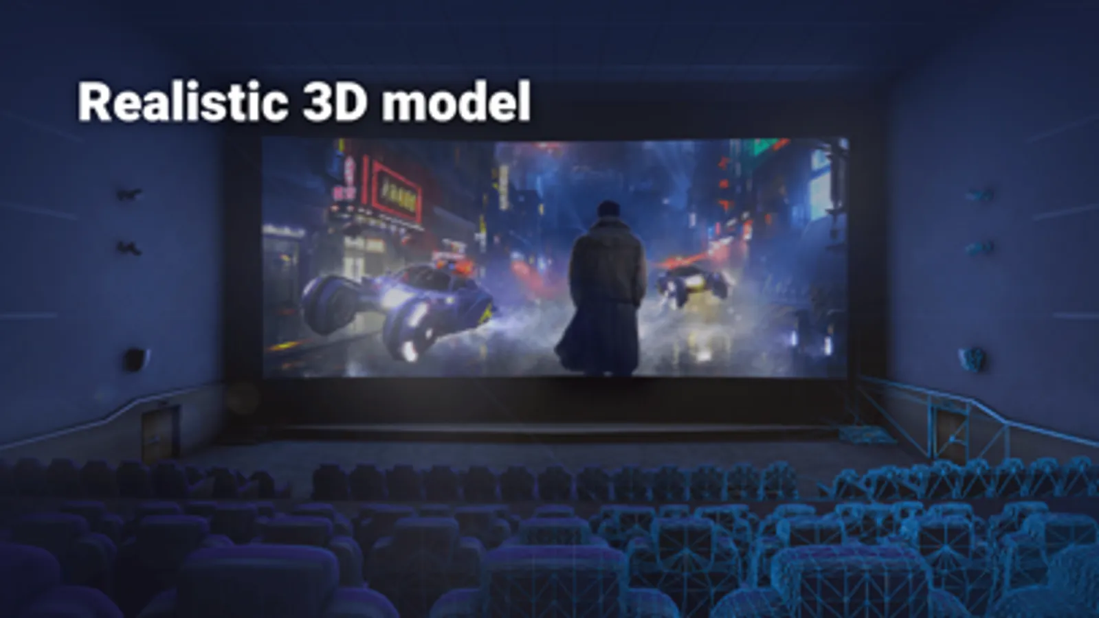 • High-quality VR theater: we have designed an immersive and realistic 3D movie theater optimized for mobile VR with high-quality textures and various lighting effects.