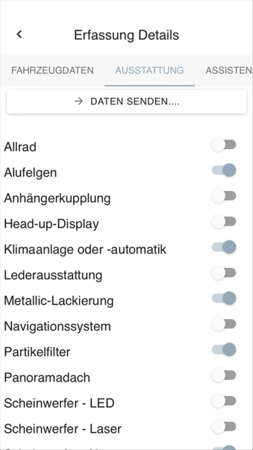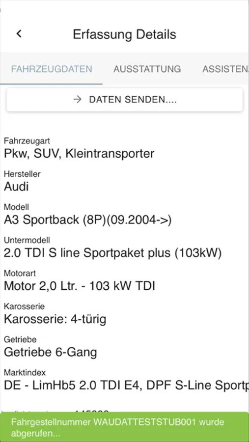 Das DAT-Ergebnis enthält alle für das Fahrzeug relevanten Informationen sowie den Händler Einkaufs-/Verkaufswert.