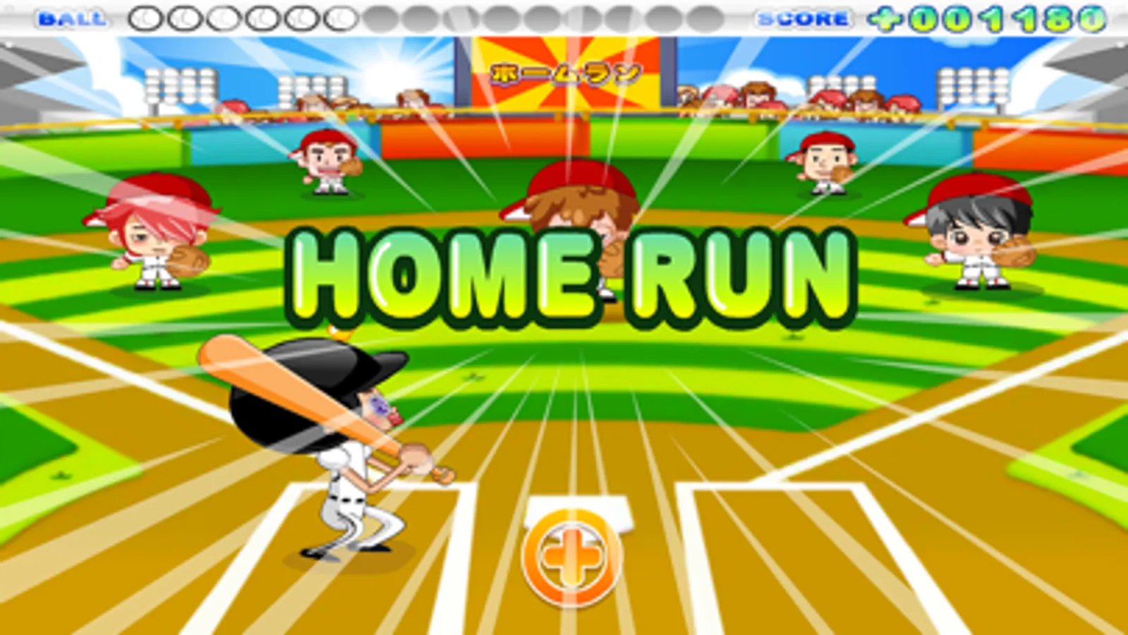 3.飛んでくるボールの位置にバッターを合わせ、標的から指を離して打ちます。