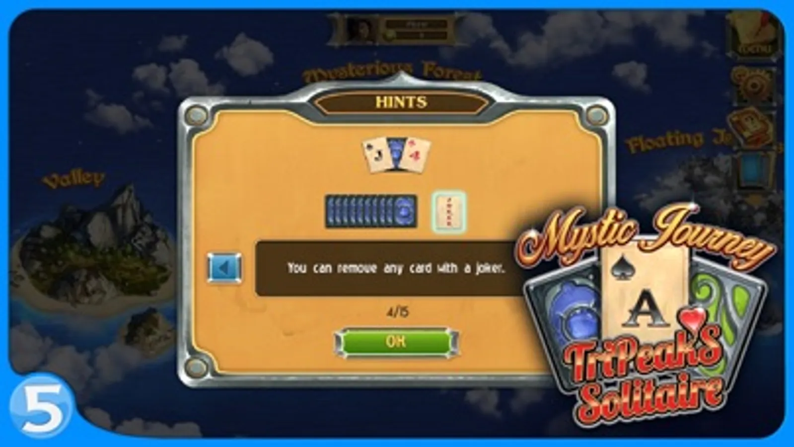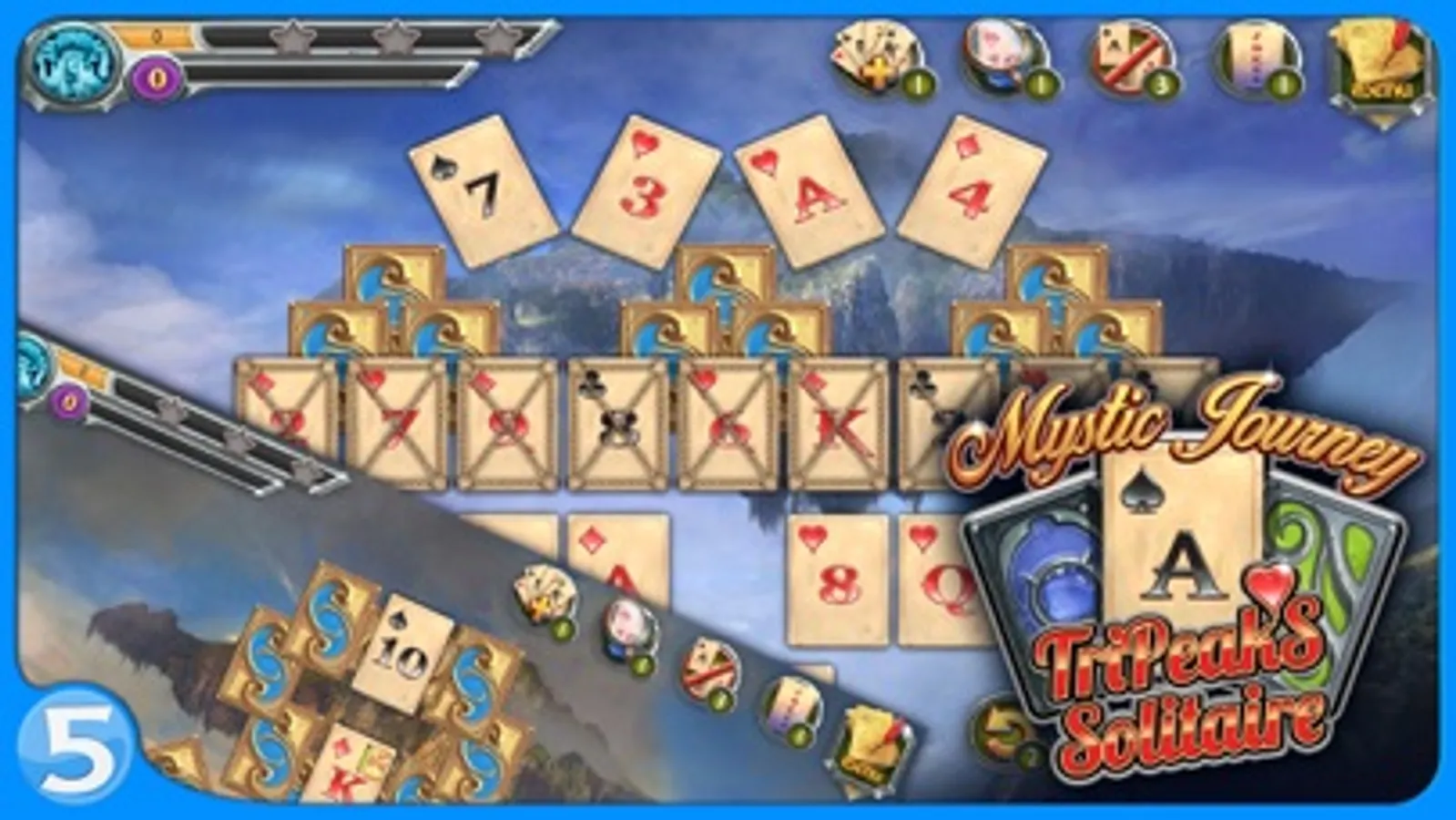 Mystic Journey: Tri Peaks Solitaire is a captivating card solitaire game that combines in itself strategy, attention span and brain responsivity. The aim of the game is to gather all cards from the table by taking a card with a value that is one higher or one lower than the top card in your deck.