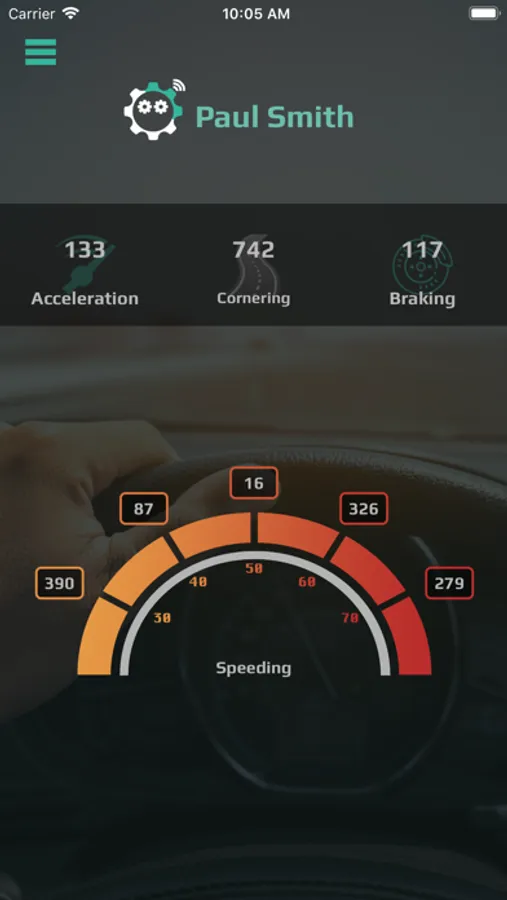 • Monitor events such as idling, speeding, hard cornering, harsh braking