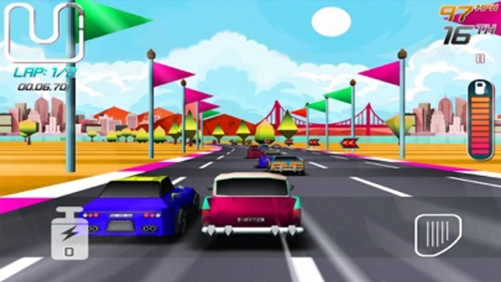 In Race Car Racer - Mobile Racing, feel your passion for speed with High Speed Racing Retro Cars. Put your pedal to the metal and race your car through stunningly 80's style Classic Arcade car racing game!