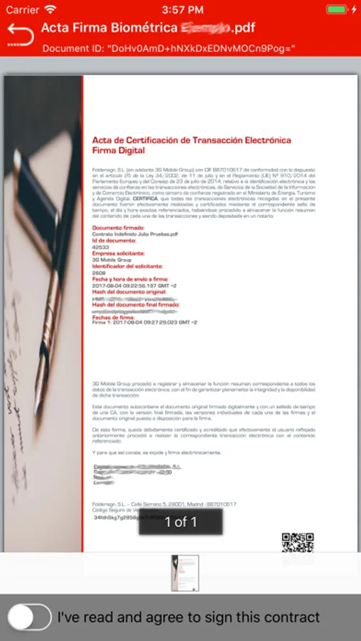 Permite disponer en movilidad de documentos listos para ser firmados, por una o varias personas, o plantillas rellenables. El proceso de firma biométrica, basado en la tecnología SealSign de Smart Access, dota de plena validez legal al documento final.