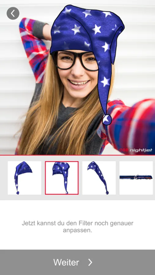 Choose from different ÖBB filters, strike your best selfie pose and share the photo with your friends on Facebook, WhatsApp, Instagram or Twitter.