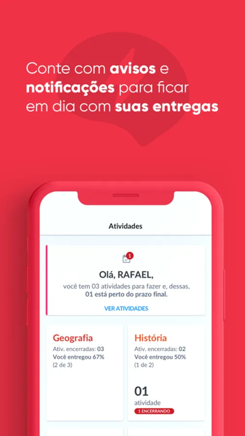 • Tarefas de casa: responda pelo app, te ajudamos a não esquecer de entregar.