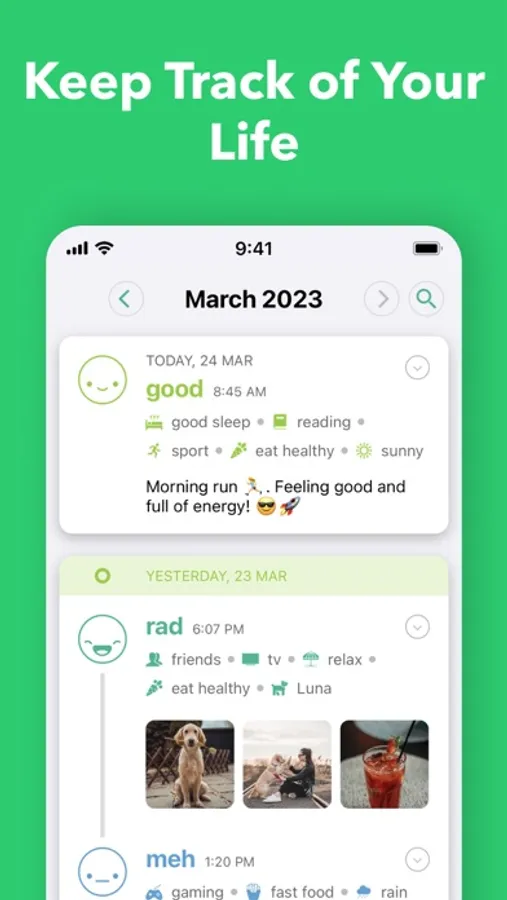 This is the time for your wellbeing, self-improvement, and self-care. Use Daylio as your daily bullet journal. We build it on three principles: