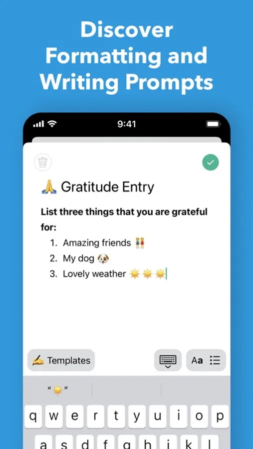 3.) Form a new habit in an obstacle-free environment—no learning curve. Daylio is super simple to use, create your first entry in two steps.