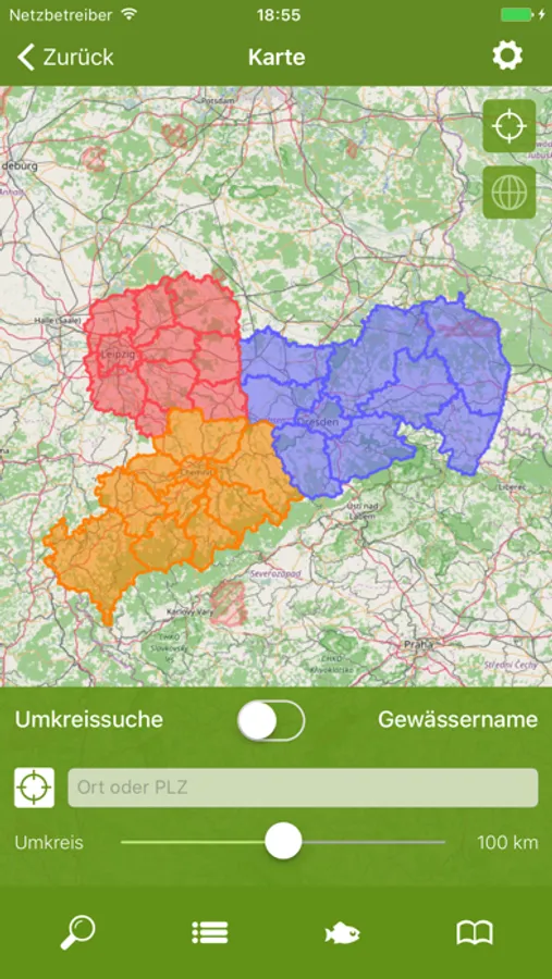 Der Angelatlas Sachsen ist ein mobiles und interaktives Verzeichnis aller sächsischen Angelgewässer. Er zeigt Dir die Flüsse und Seen, für die die drei Regionalverbände Dresden Elbflorenz, Südsachsen Mulde / Elster e. V. und Leipzig e. V. das Fischereiausübungsrecht besitzen. Angler und interessierte Nichtangler finden mit dem Angelatlas Gewässer in Ihrer Nähe inklusive aller nötigen Informationen und Bestimmungen.