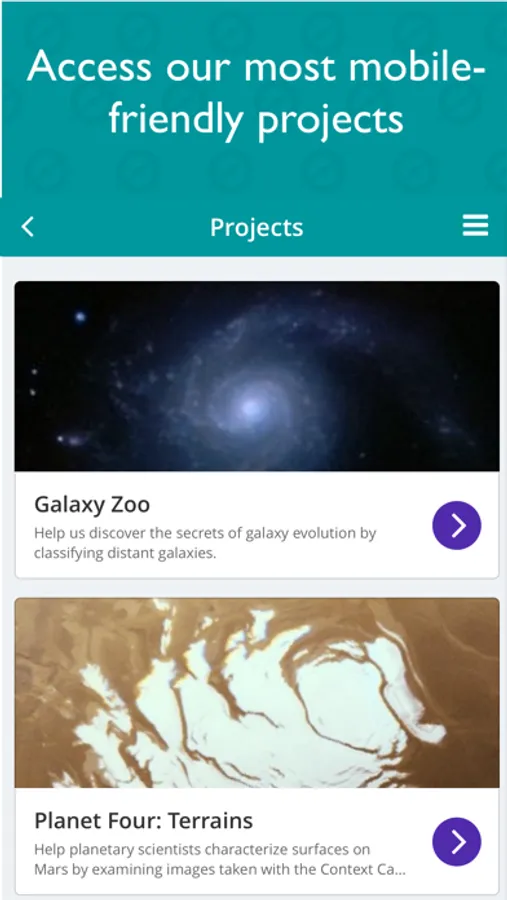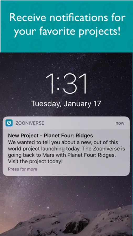 The Zooniverse Mobile App provides push notification updates about our projects, as well as access to our most mobile-friendly projects and publications.