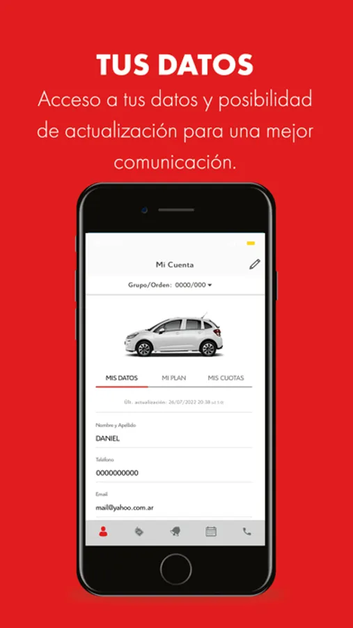 Luego de Registrarte con una contraseña asociada a tu DNI, vas poder ver tus datos personales y modificarlos, informarte de las características de tu plan y estado de tus cuotas, descargar la cuota del mes, ver los resultados del acto de adjudicación, solicitud de carpeta y pedido de vehículo.