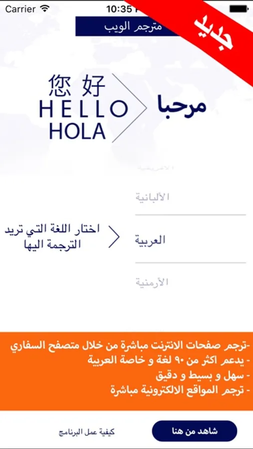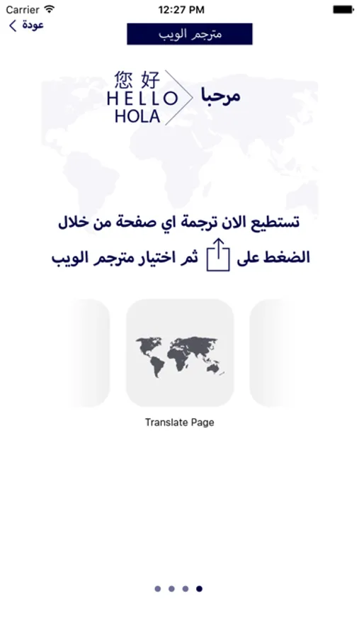 مترجم الانترنت الكامل ، يترجم المواقع الالكترونية و صفحات الويب مباشرة من خلال متصفح السفاري على جهازكم، دون الحاجة الى نسخ و قص كلمات او جمل لترجمتها: