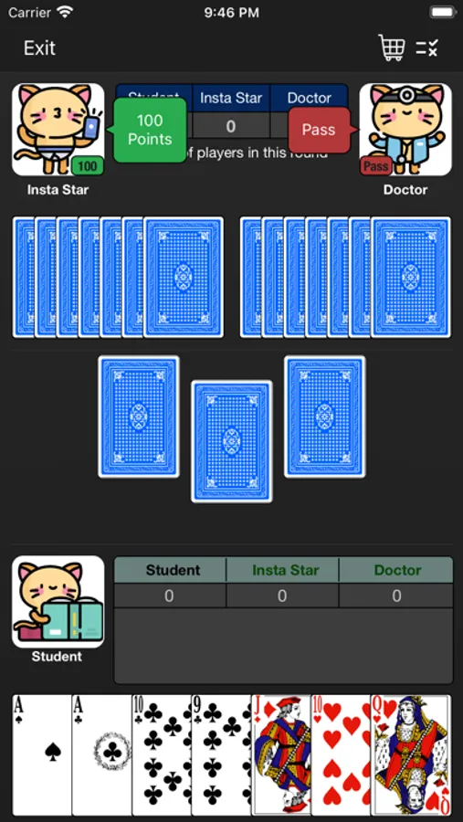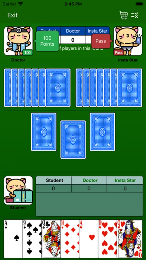 Game1000 is a popular card game in Eastern European countries for three players, the aim of which is to score 1000 points to win the game. They play a deck of 24 cards that contains cards of four suits from nine to an ace.