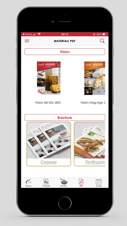 Scopri la sezione che contiene tutti i materiali in formato PDF, divisi in brochure e ricettari e salvali o condividili con chi vuoi anche via Whatsapp.