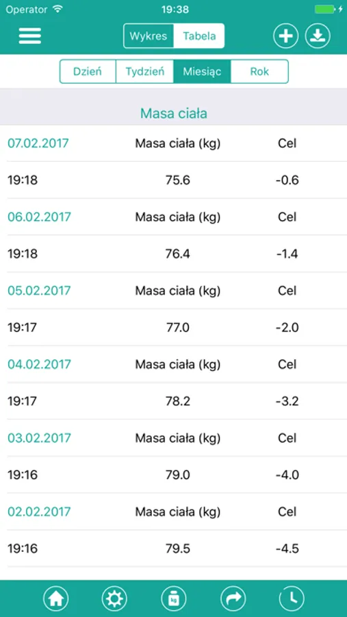 • Graficzna prezentacja wyników w wybranym okresie (dzień, tydzień, miesiąc, rok)