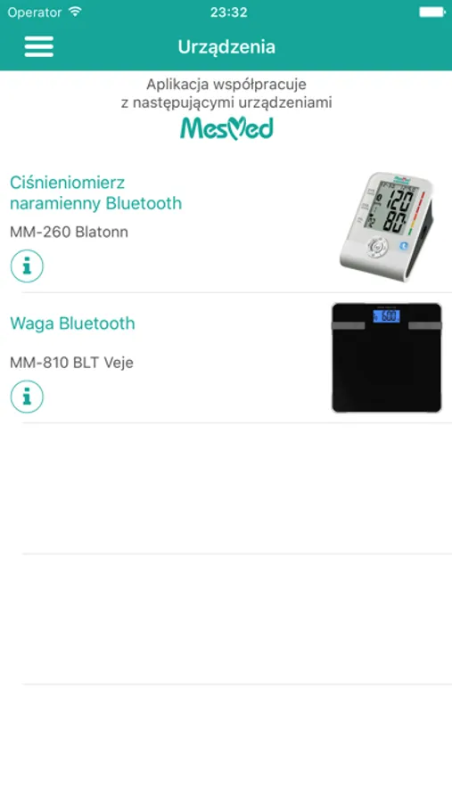 • Współpracuje z urządzeniami MesMed Bluetooth 4.0