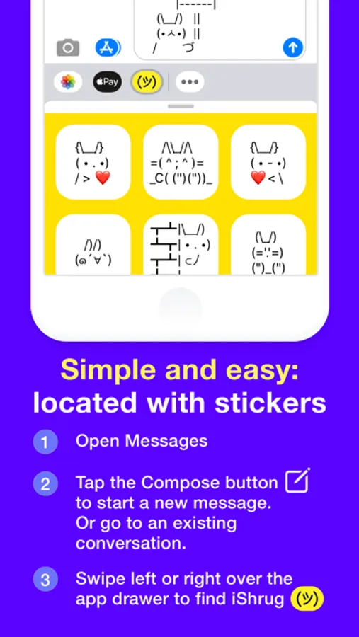 iShrug will show up in the app drawer in the Messages app (like stickers)