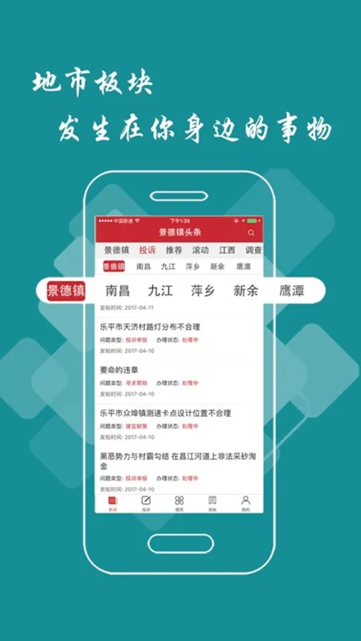 景德镇头条APP,是基于大数据统计汇集地方性新闻内容,包括头条、问政、连线、论坛等几个频道,里面的资讯实时更新,并能根据用户社交行为、阅读行为、地理位置、职业、年龄等挖掘出兴趣并推送对口新闻资讯。