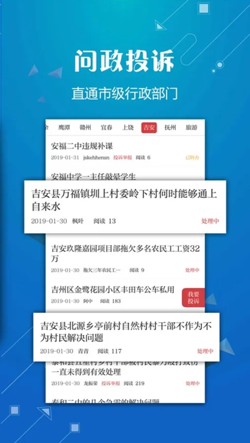 吉安头条APP,是基于大数据统计汇集地方性新闻内容,包括头条、问政、连线、论坛等几个频道,里面的资讯实时更新,并能根据用户社交行为、阅读行为、地理位置、职业、年龄等挖掘出兴趣并推送对口新闻资讯。