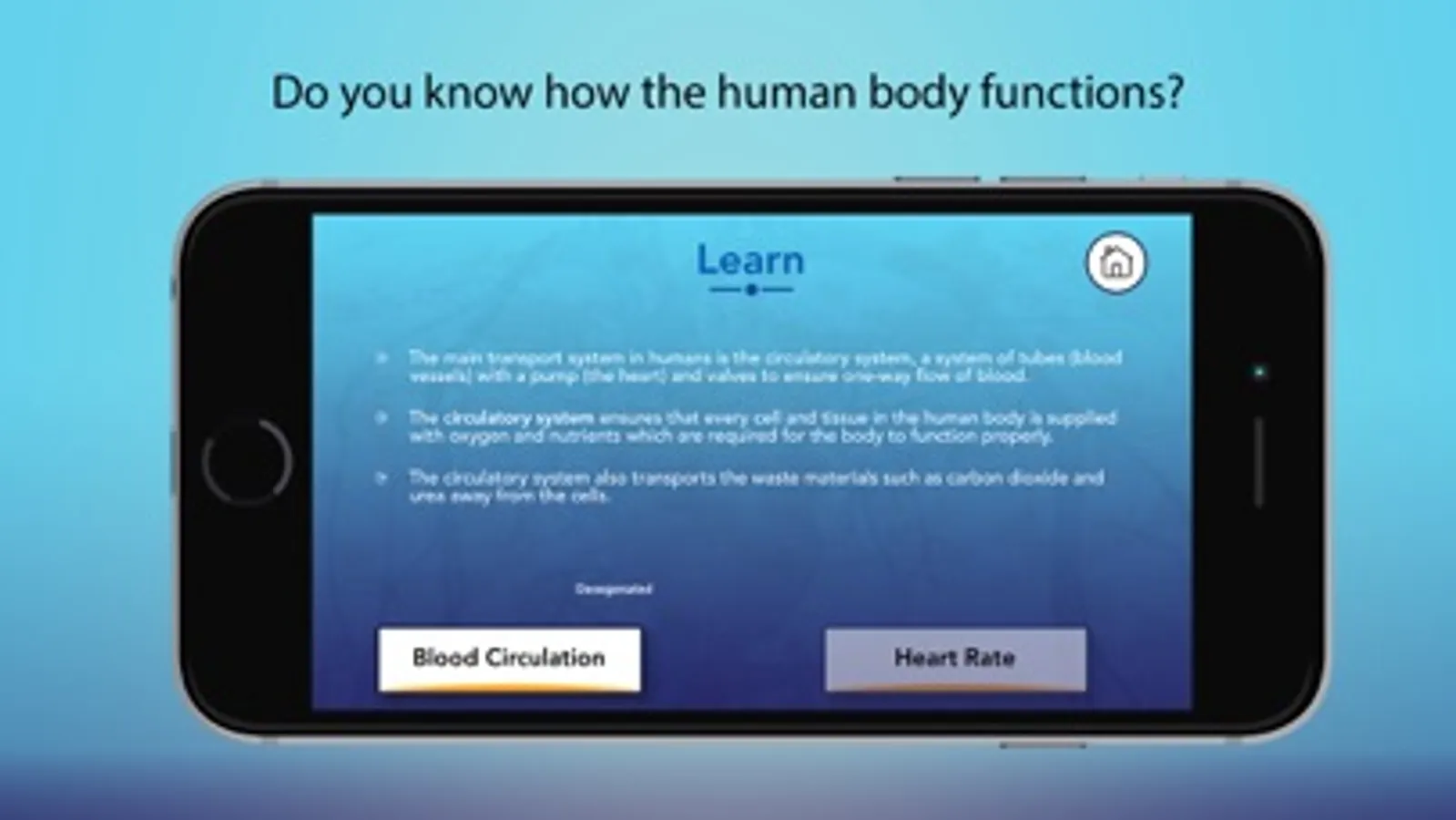 This educational application helps students understand and learn about coronary heart disease, components of blood, pulse rate, blood circulation, transport in humans, average heart rate in an easy and engrossing way.