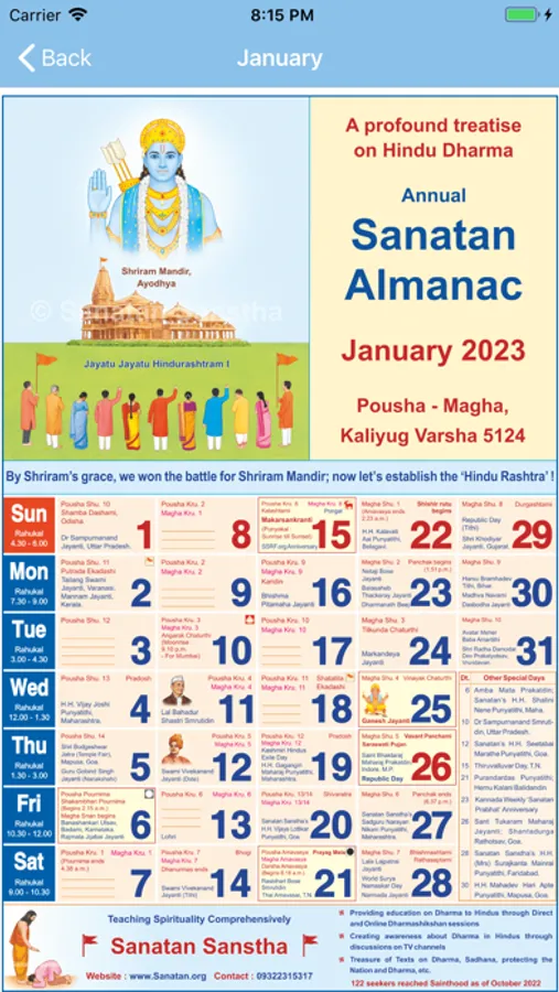 Like the English Calendar 2023 (Sanatan Almanac) App ? You can also order hard copies of this English Calendar online for your home and office.