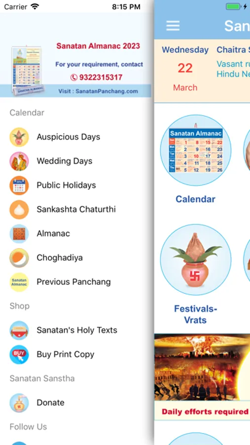 English Calendar 2023 (Sanatan Almanac) App Features -