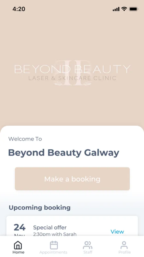 The Beyond Beauty Galway app makes booking your appointments and managing your loyalty points even easier. You're just a few taps away from feeling good and looking great!