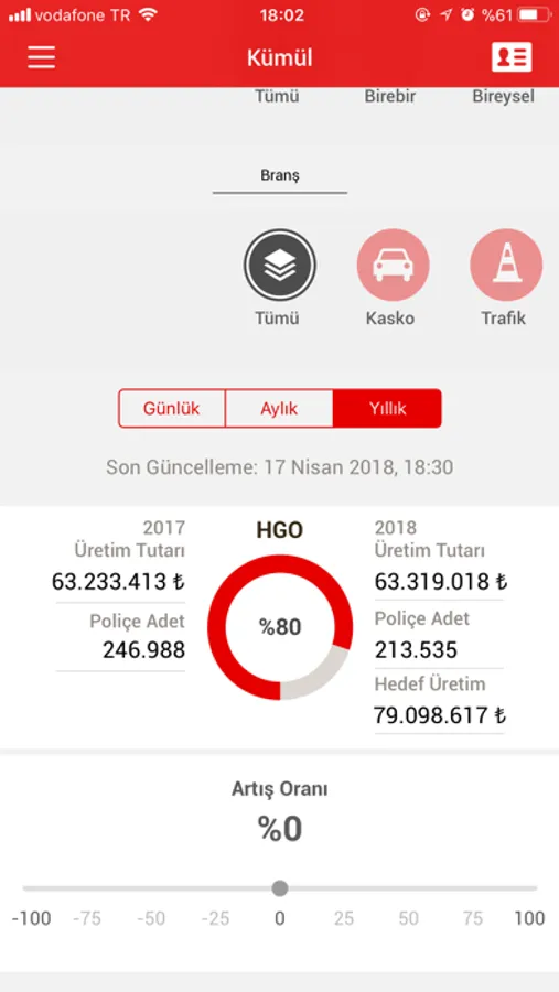 Aksiyon uygulaması ile sorumlu olunan kanallar için üretim ve hedef takibi yapabilir, ziyaret sonuçlarını tanımlayabilirsiniz. Kampanya, tahsilat, yenileme, vade takip, komisyon, hasar ve kümül üretim bilgilerine erişebilirsiniz.
