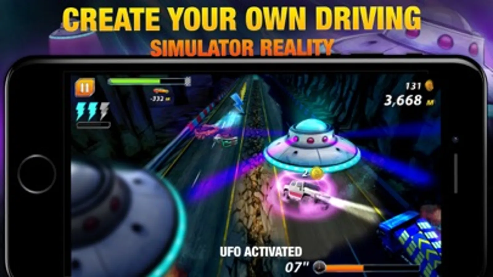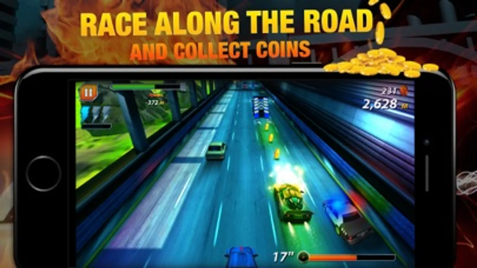 Fast racing: Cops on your tail? Get to the checkpoint of these highway games before the time runs out and this becomes a life and death race! Become a highway rider and drive as fast as you can, collect coins and catch the slipstream of other vehicles. The closer you pass a car the higher the score you get. Also, you can get specials like TANK ACTIVATED, UFO ACTIVATED and even PLANE ACTIVATED to play crashing games and destroy them all!