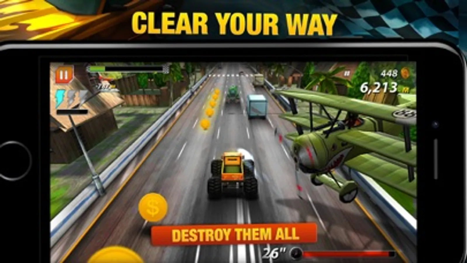 **** each map has 4 levels of pimping your car to become a real highway racer: acceleration, max speed, resistance and turbo speed.