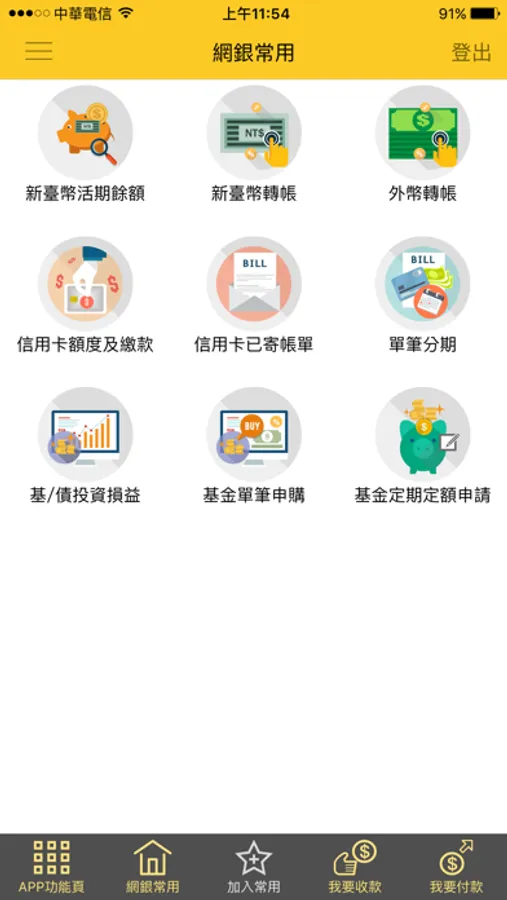 2.依操作習慣自訂「網銀常用」功能,使用省時又便捷。