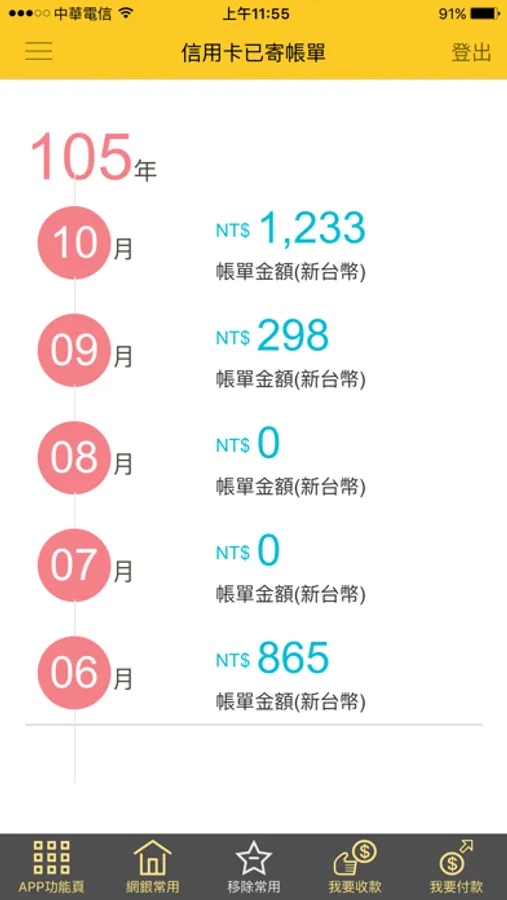 (2)信用卡帳單查詢