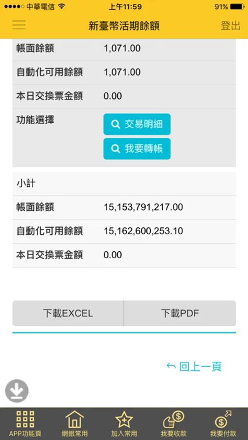 (1)台幣存款、外匯存款、黃金存摺、貸款帳戶等餘額及交易明細即時查詢。